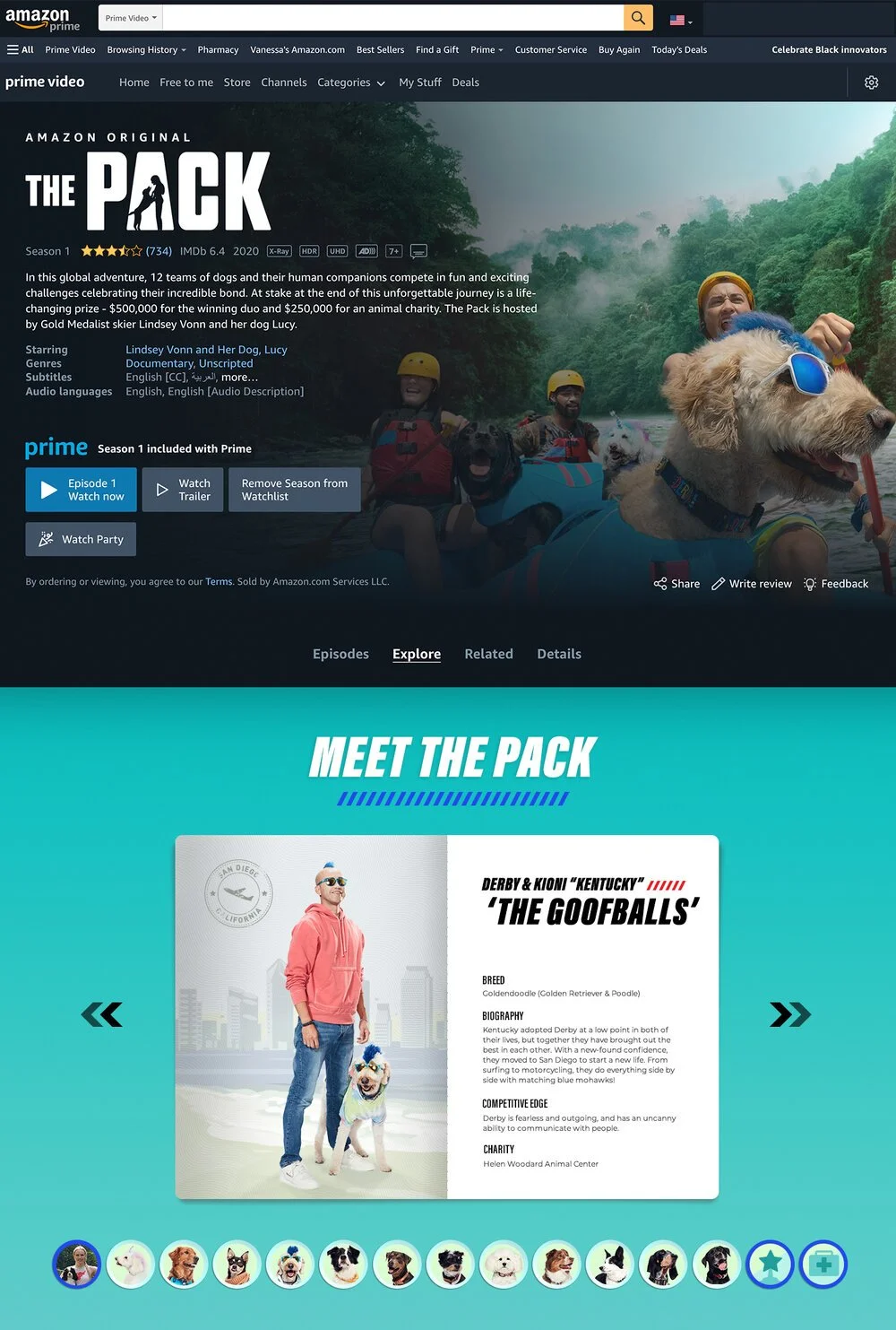 In collaboration with Wildlife LA, we designed an immersive landing page for The Pack, an Amazon Original series where 12 dog-human teams travel the globe, competing in fun and heartwarming challenges.